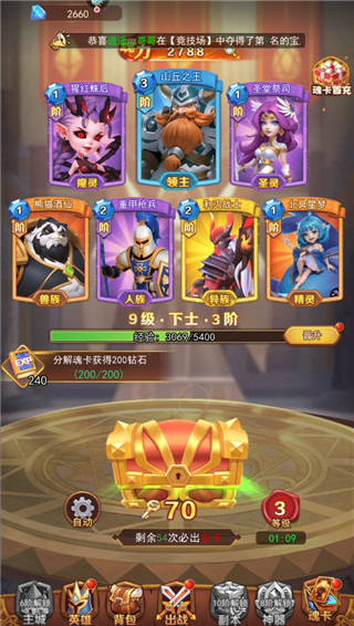 4、在魂卡界面开启宝箱获得魂卡可以提升魂力