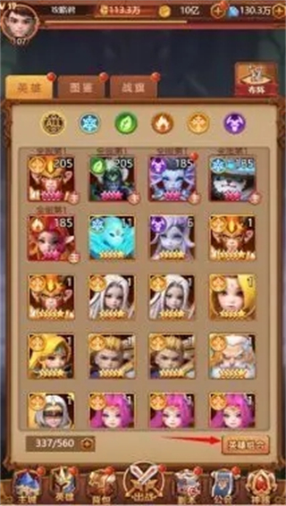 英雄组合 星级是英雄核心养成的要点,能升级到13星的英雄是游戏中后期的核心养成要素,可以通过图鉴的形式查看哪些英雄能升级到13星,最高星级受开服天数和世界等级影响的。不能升级至13星的英雄也会有技能相当厉害的武将,可以用于前期的争霸,毕竟这些英雄前期培养会稍微轻松一些。
