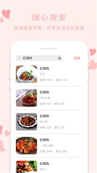 3、一键精准搜索食谱,模糊搜索系统轻松识别搜索目的;