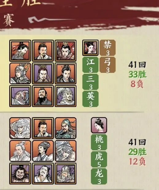 打前排脆控制少的阵容很猛,九个武将缺一不可,成型难度稍微大点,三龙可换三国,三龙上限更高一点。