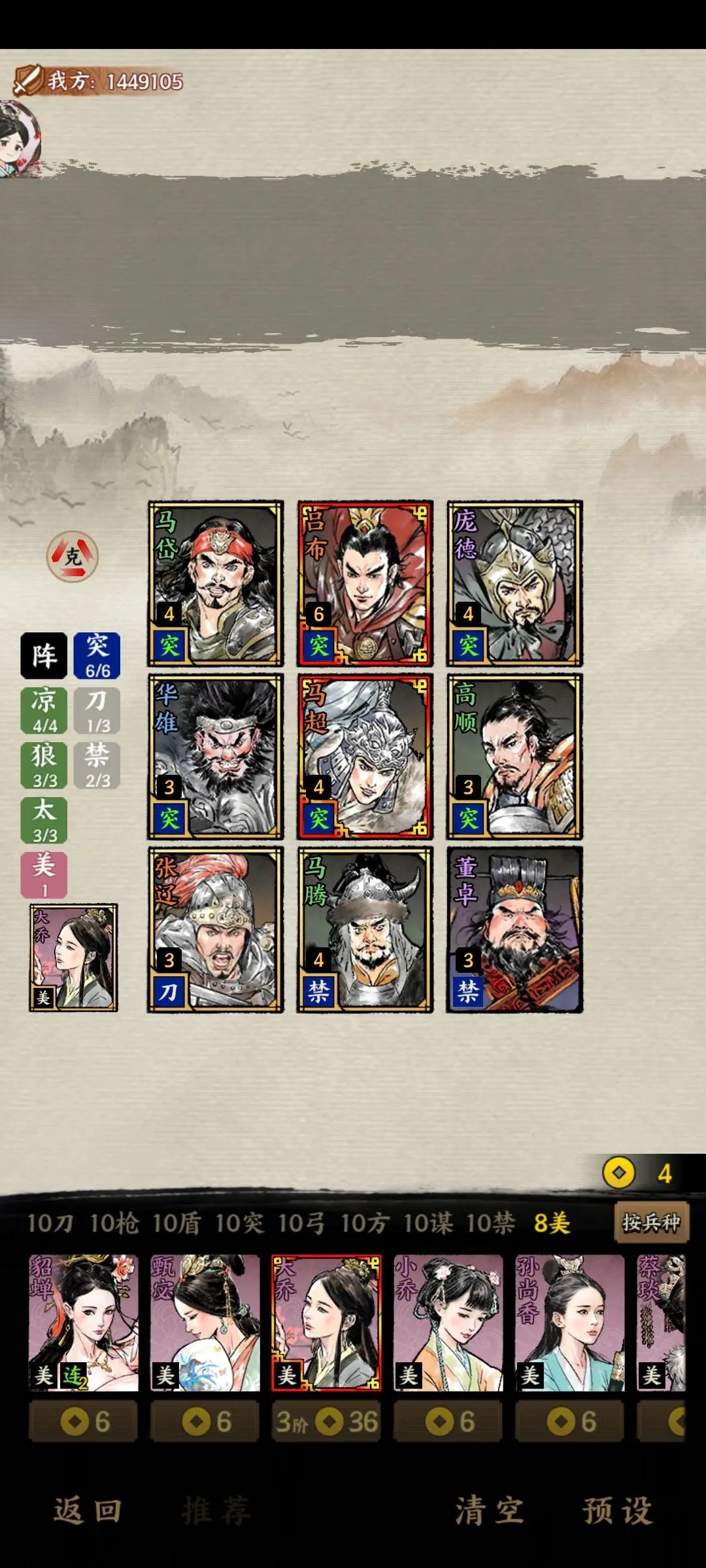 阵容解析:偏向控制的阵容。三马食槽强大的回复能力以及司马懿的威吓,郭嘉遗计的退场都为谋士们的输出提供了不少安全保证。司马懿作为签到送的橙卡,也为收集的难度减少了许多,最后一个空置的位置也可以根据自己单卡安上张辽补足输出和控制,也可以补上前排更好的吃伤害创造输出空间。