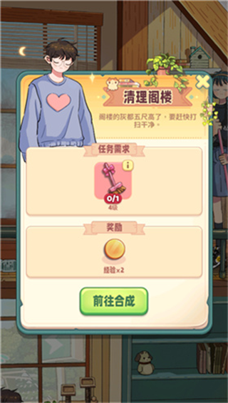 1、玩家需要完成游戏中相应的任务,任务可以通过合成来获得游戏中的游戏奖励。