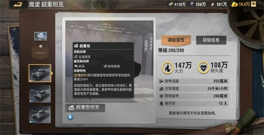 超重坦克移速慢,但装甲和耐久更厚,克制重坦,被步兵和反坦克炮克制。
