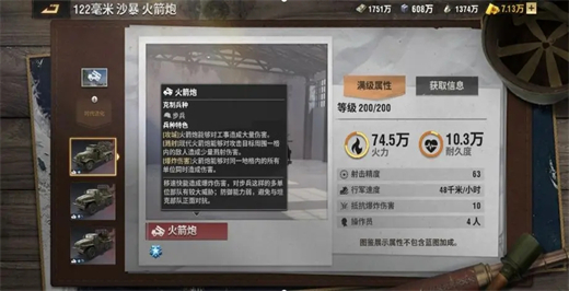 首发装填时间短,对操作、制空权要求高,团战时适合单操躲在炮团后面输出,也可与步兵主战混编集团绕后推堡,能有效防止步兵推堡。