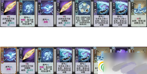 丹水元婴过渡腾浪越多越好,元婴期腾浪尽量不合,平铺多张腾浪多叠水势,金牌流转腾浪相当于多一张腾浪,在腾浪前用水阵或聚灵丹加灵,潜遁和铁骨防住对面关键输出牌,汹涌收尾输出。
