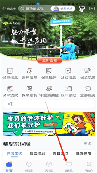 打开软件点击主界面下的【康养】板块