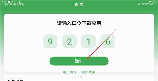 2、想要安装软件到电视机中,输入软件口令,点击【确认】