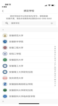 如果你是第一次使用且没有进行微信与校内身份绑定,你需要绑定学校才能开始课程学习。首次登录页面跳转至身份绑定界面,选择对应学校,输入账号密码绑定,学校列表支持快速搜索。如果你是已经绑定过校内身份,将直接进入你的课程列表,开始学习。