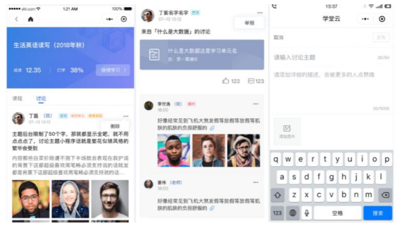 无论是未开课课程、开课中课程还是已结课课程,老师和学生都可正常使用讨论区。在讨论区中,既包含了学习单元中所有的讨论内容,点击学习单元可进入浏览该单元内容,也可点击发帖发布全新的讨论话题。讨论支持输入文字和插入图片。