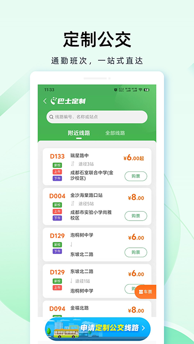 在成都公交app官方版中用户可以通过输入公交车号查看各路公交车的信息,如所过站点,发车时间,到站时间等,用户还可以设置下车提醒,当到下车点的时候就会提醒你下车。软件还支持用户关注常用路线,将经常乘坐的路线添加至关注中即可更快的获取公交信息。此外,软件还为外来游客提供了景区门票,交通运输等一站式旅游服务功能。有需要的朋友快来下载软件享受便捷的出行服务吧。