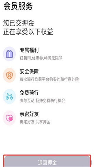 5、申请退还押金后,可在“我的钱包”->“押金”界面查看退款进度。也可以取消退款继续使用