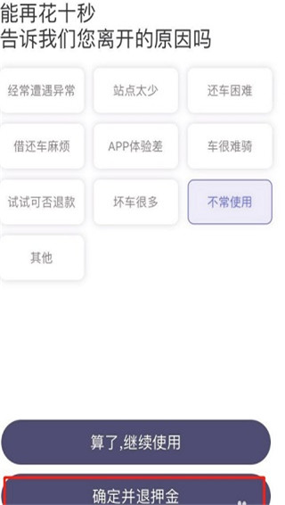 4、随便选择一个原因,点击确定并退回押金
