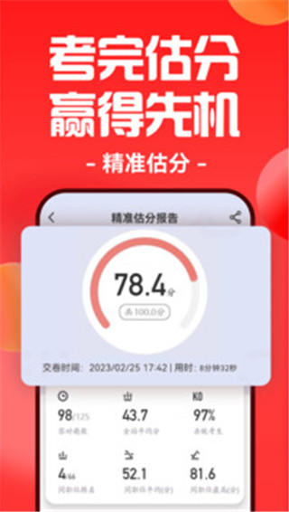 3、考试估分的方式非常的新颖,用户提前估分可以有更多的心理准备;
