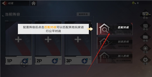 配置阵容后点击匹配对战可以匹配其他玩家进行公平对战