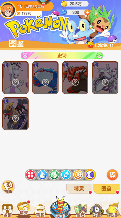 1、本游戏所有精灵分为海、陆、空、光、暗五大阵营。