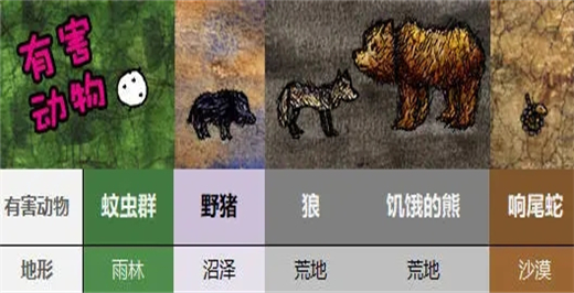 3、安全问题,图三的动物会造成生命危险(除了蚊子需要站在除雨林以外的地形并保证恢复后第一时间吃到食物),除非有人帮你消毒,不然必死无疑,特别是人丁稀少只有一个女孩的家族,希望女孩们能保护好自己以免绝后。