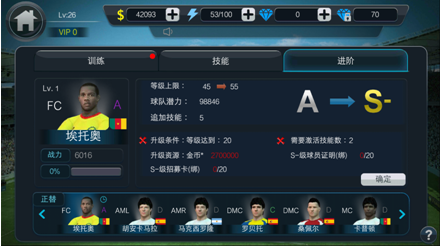 7、球员进阶,这一功能就是把品质低的球员进阶成更高级的球员。这样即便是前期签约了等级比较低的球员,也不用担心解雇带来的损失了。