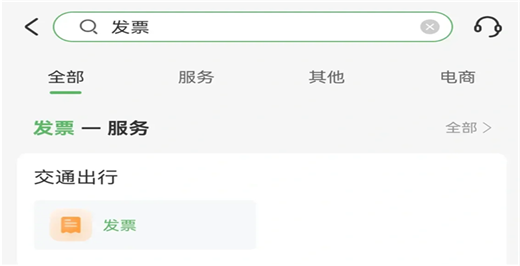 2、在软件里直接搜“发票”点击交通出行下面的发票