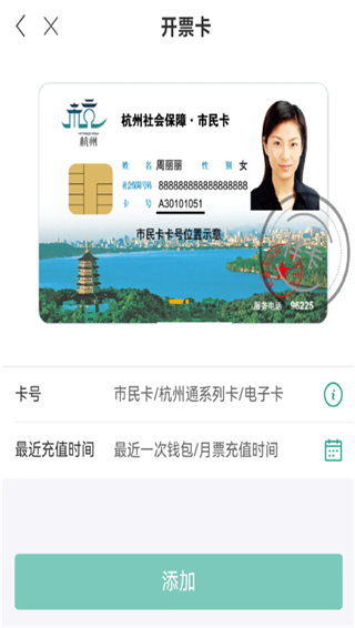 3、添加在充值里看到的卡号,选择充值日期就会跳出来杭州通电子卡,