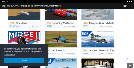 3、随后会跳转到浏览器内,你可以看到各种型号的飞机