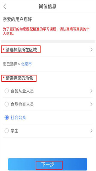 食安课堂是根据学员的注册信息匹配对应的培训视频材料,无论你是在车上,在等地铁,还是在等人吃饭的空闲时间,都可以拿出手机,点击软件,随时随地学习食品安全的相关知识