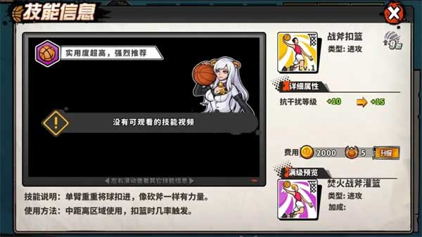[战斧扣篮]单臂重重将球扣进,像砍斧一样有力量,提升抗干扰等级。