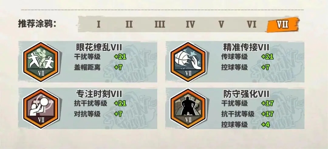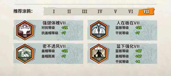 解析:进攻超强,搭配抗干扰属性提高进攻能力,辅助各项外线防守属性。