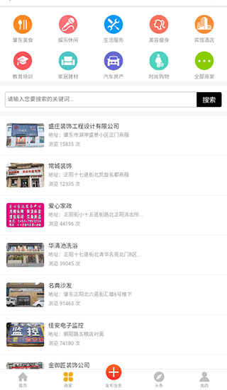 3、进入商家模块,随时查找各种类型的本地商家信息
