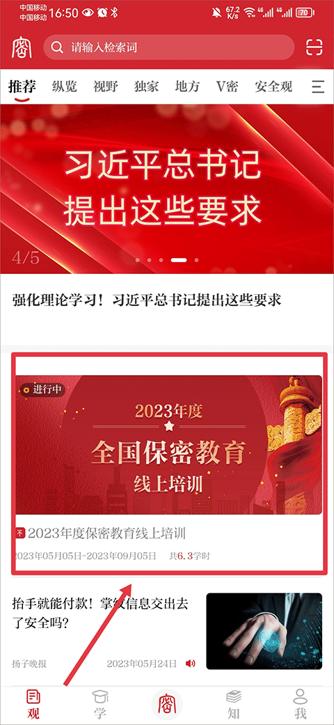 1、打开app,在首页中点击2024年度全国保密教育线上培训界面