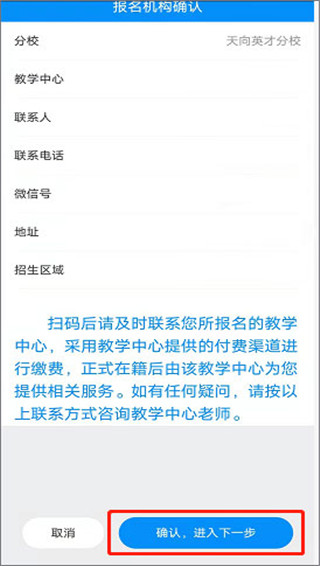 (4)注册填报:“注册填报”时需扫描您所报名的教学中心招生二维码报名。填写信息时带“*”标记为必填项,请按照实际情况阅读相关要求并填写。完成后“提交报名信息”,等待审核并及时关注您的报名进度。