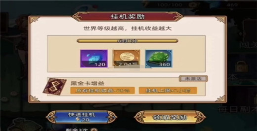 每天都可以在主界面领取挂机收益,这个收益随等级提高后续也会提高