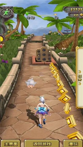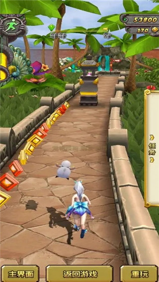 神庙逃亡2国际版的玩法非常简单,玩家只需要控制角色左右移动,上下跳跃即避开障碍物,防止野兽追上即可,随着时间的进行,角色的跑酷速度将会越来越快,玩家需要做到手眼协调,尽可能的存活更久,同时游戏还有几次容错的机会,当没有躲避障碍物时,野兽并不会立即将你抓住,只会离你更近,等过一段时间又可以甩开野兽了。同时,游戏中还有许多道具可以帮你甩开野兽,如超级加速,护盾等。喜欢跑酷与刺激的小伙伴,赶快下载这款经典的童年游戏吧。