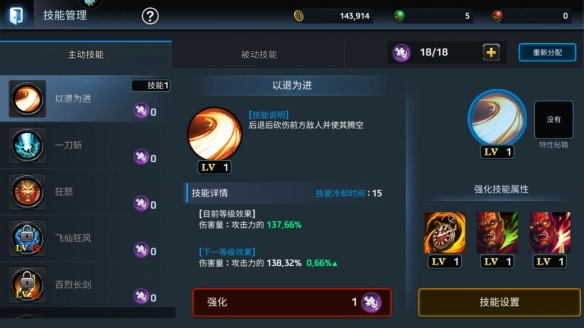 解锁技能后可以解锁相应的属性进行配置,然后再使用道具强化即可