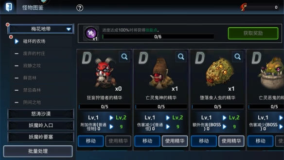 在图鉴界面可以使用精华来提升怪物的属性和等级