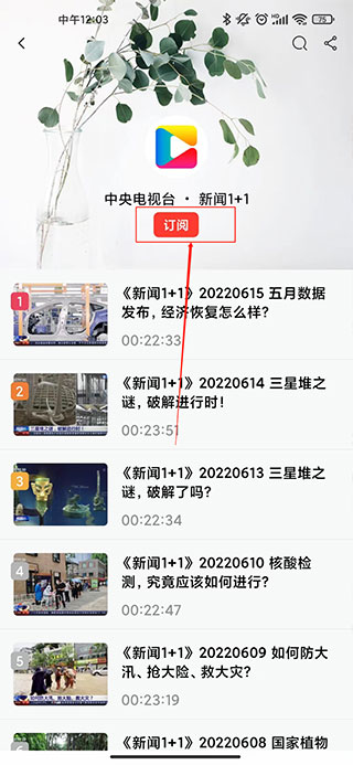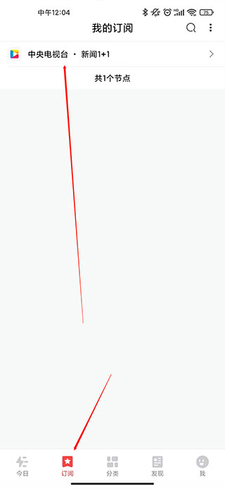 2、点击中央电视台,点击订阅