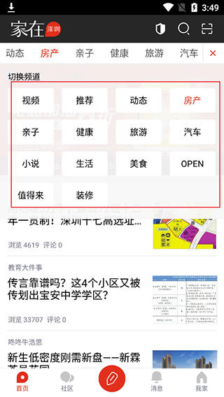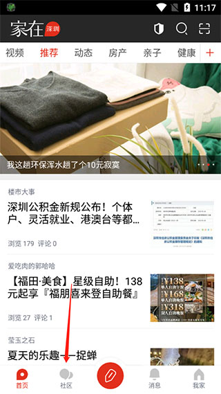 1、进入家在深圳app,找到社区