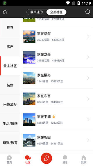 5、拥有超过3500个社区和1500个主题圈子,包括新房、二手房、业主、临深、装修、亲子、教育等,用户可以根据自己的兴趣加入。