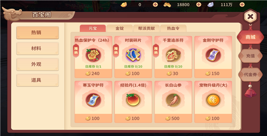 闯荡江湖总要有些盘缠傍身,才能更加轻松自在!那么快速成长的最后一步,就是要告诉各位侠士,一定要注意积累财富!游戏中核心玩法消耗的货币主要包括:银两、金锭、热血令、元宝和帮派贡献。不要小瞧了这些“货币”,在对应的市集里,使用它们可以购买到许多成长变强必备的珍稀道具!所以,请各位侠士注意通过任务活动、摆摊出售、帮派玩法等方式积累这些货币,以备成长所需!值得一提的是,活动中每日还有大量折扣商品,各位少侠一定不可错过!