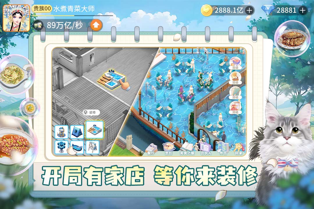 1、餐厅皮肤,餐厅皮肤针对对应餐厅有单独的【营收加成】。2、餐厅家具。
