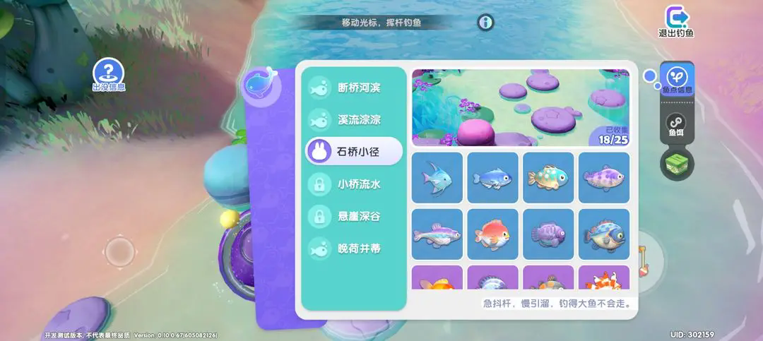 钓鱼点信息方便切换,点下自动寻路就过去了。可以切换鱼饵增加出的几率,上钓的感叹号颜色不同,品质不同