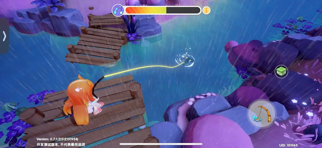 第四步:鱼一开始会挣扎,此阶段可以慢点拉线,也不要完全不操作,鱼跑太远会失败