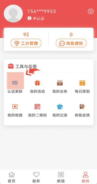 在登录页面下方栏目点击“我的”,进入工具与应用模块,选择“认证更新”。