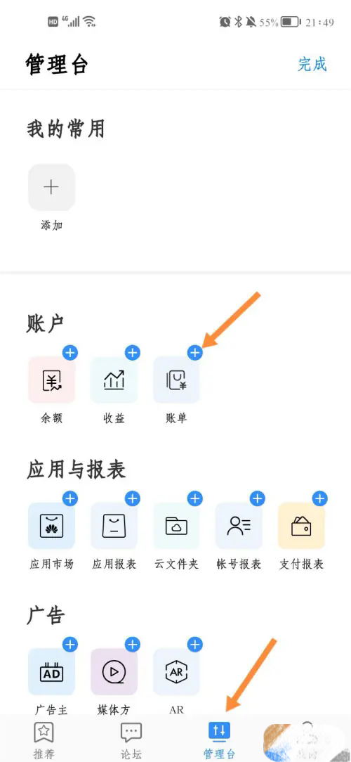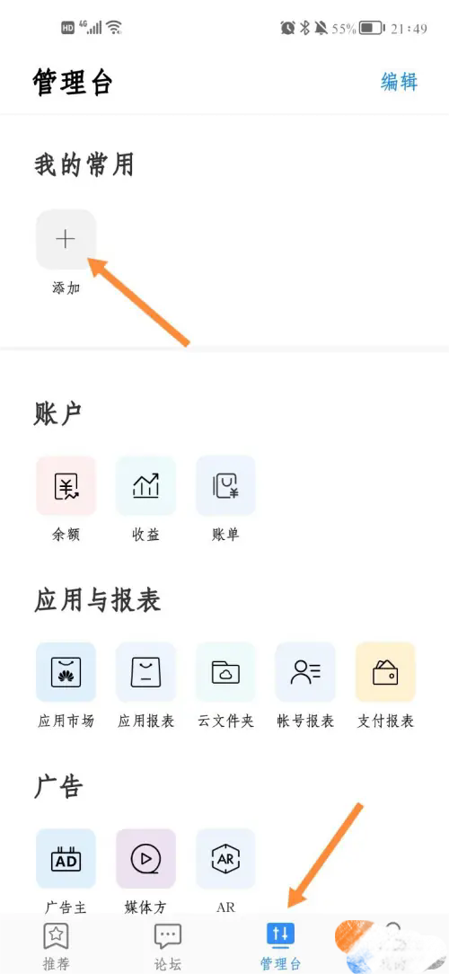 第一步,打开应用【控制台】页面,点击【我的常用】栏目下的【添加】