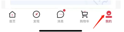 2、进入软件后,可以看到有首页、发现、消息、购物车、我的五个板块;