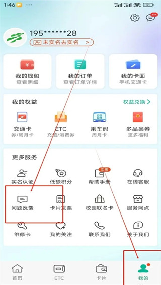 打开上海交通卡,在主界面点击右下角“我的”,在我的界面中点击“问题反馈”