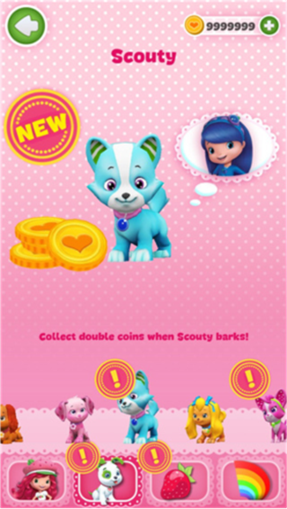 3、Scouty,蓝色的小狗,解锁需要3450的金币,和它对应的公主同样也是蓝色衣服和头发的