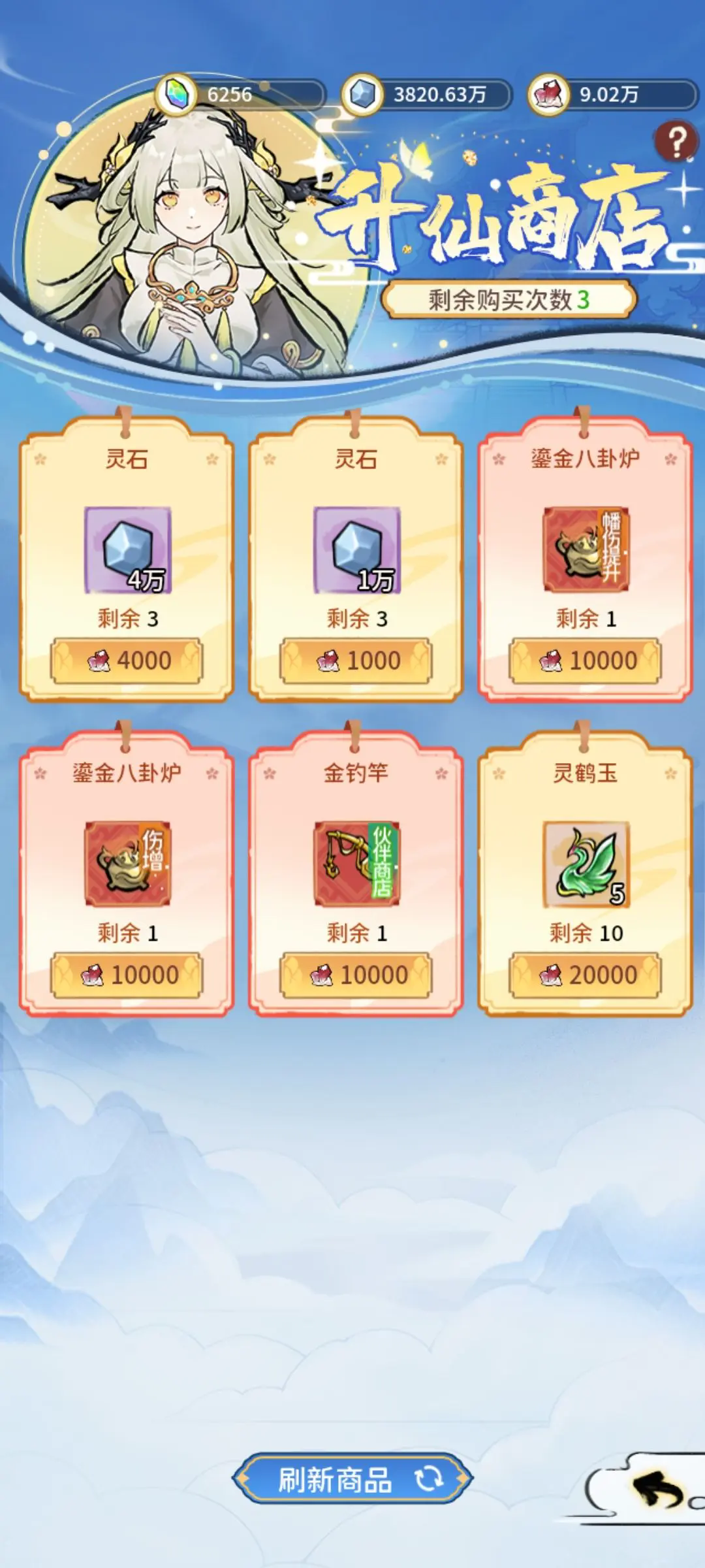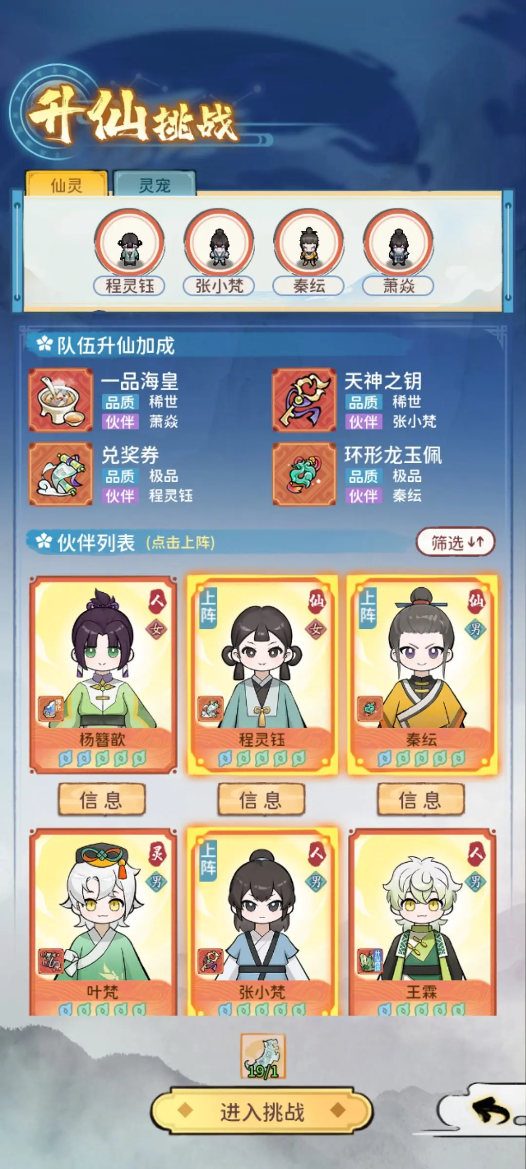 主要目的就是升仙刷仙晶,通过天神之钥,龙蛋,概率出仙晶张小梵,程灵钰,叶梵(开局不带,刷出仙晶后面可用袋子选伙伴令灵宝买瑶姬)