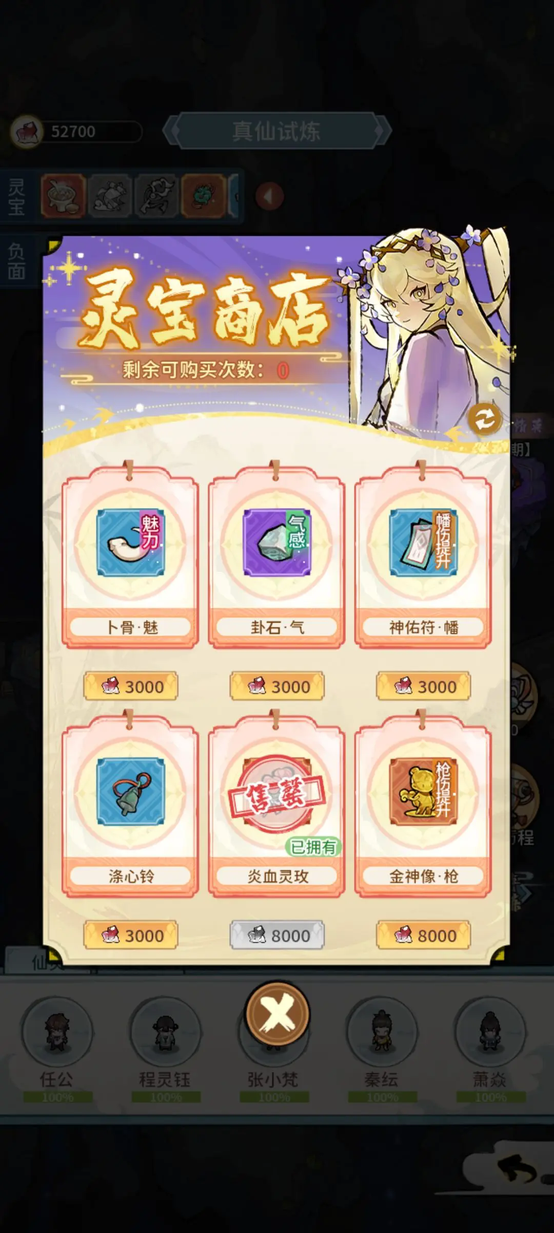 打6次怪出灵宝商店,可刷新出伙伴金奖券,伙伴商店折扣,斩龙剑,引龙香,袋子