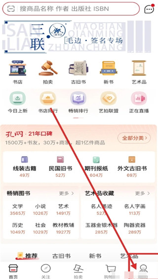 1、孔网书店区:汇集全国各地的网上书店10000多家,书摊50000多家,展示图书9000多万种;海量优质特价书、折扣书、二手书,是爱书人的淘书圣地。2、孔网拍卖区:每日新增10000种拍品,从明清古籍、民国期刊、名人信札到字画、连环画、邮票、钱币到古玩杂项,都能以合适的价格购得。