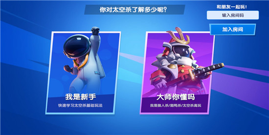 4、游戏开始,没玩过的小伙伴可以点击左边的我是新手来快速学习太空杀的基本玩法
